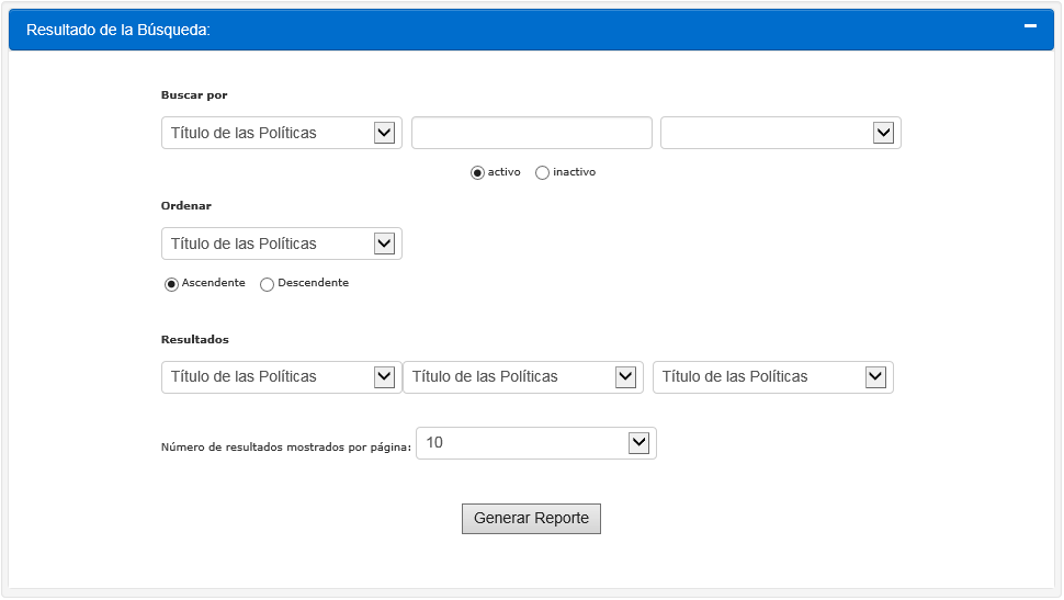 7.Presione Generar Reporte para crear su reporte típico. Los resultados serán desplegados.