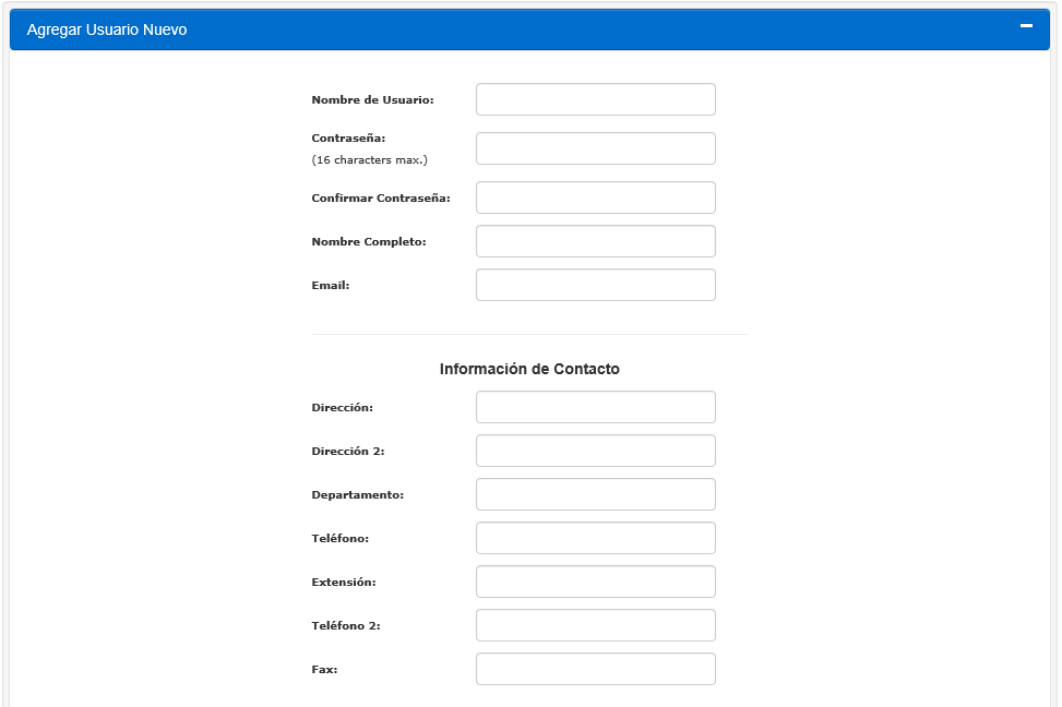 4.Complete la información solicitada dentro de la sección Agregar Nuevo Usuario: