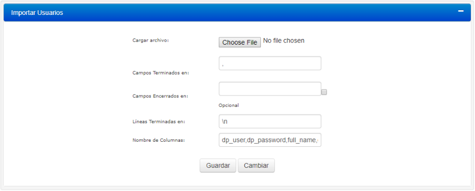 Para importar un archivo de Nombres de Usuarios, complete la información solicitada:
