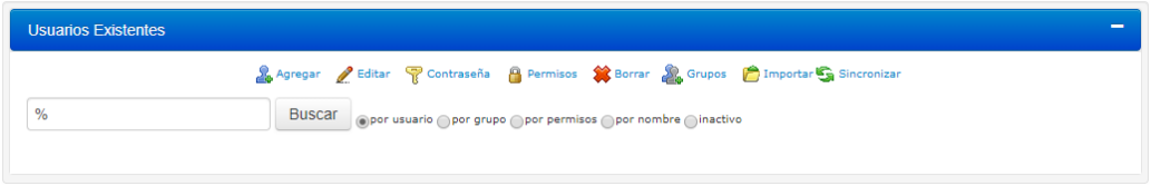 2.Haga clic en Usuarios. Los usuarios existentes se desplegarán.