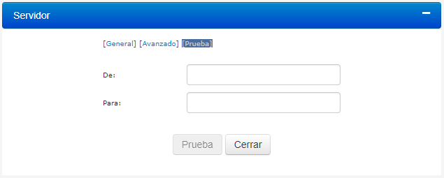 2.Debajo de Opciones del Servidor, seleccione Email (SMTP). La ventana del servidor será desplegada en la pantalla: