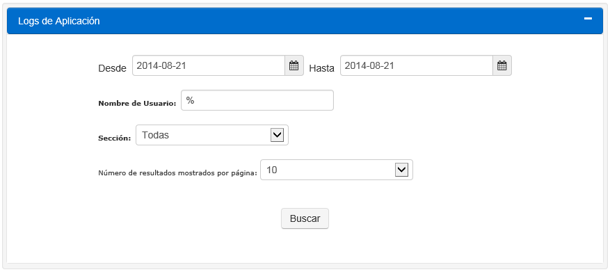 Siga estos pasos para colocar los parámetros de búsqueda y ver las bitácoras de la aplicación: