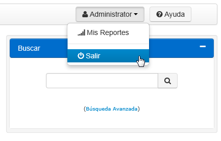 Para salir de DynamicPolicy™, haga clic en su nombre de usuario en la parte superior derecha de la pantalla y seleccione la opción Salir: