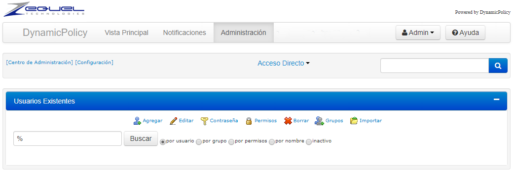 4.Ingrese Admin en el campo de Búsqueda y presione Buscar.