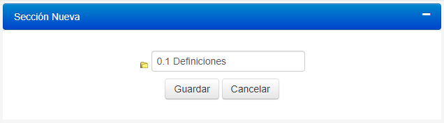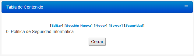 6.Ingrese el título de la Nueva Sección y presione Guardar. La nueva Sub-sección será desplegada en la Tabla de Contenido.