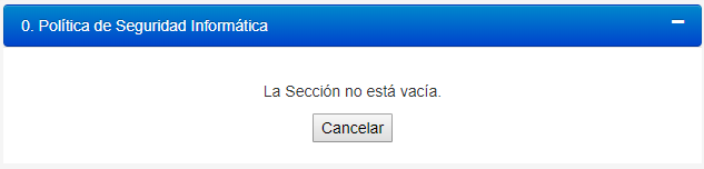 6.Seleccione Borrar para eliminar la sección. El sistema le avisará si la sección está vacía y puede ser borrada (Solo secciones vacías pueden ser eliminadas de la Tabla de Contenido):