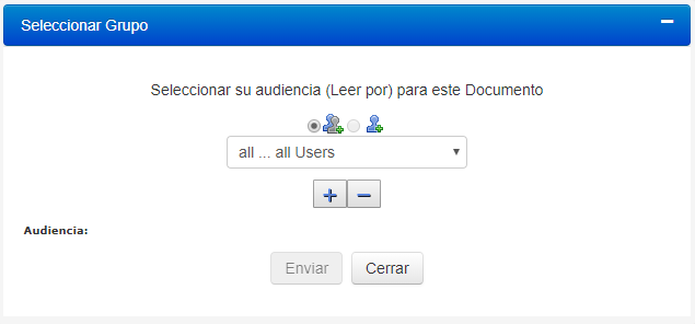4.En la ventana de Selección de Grupo, seleccione un grupo de usuarios de la lista desplegable que sería la audiencia para la política (por ejemplo, los empleados quienes leerán y usarán la política). Presione el signo de”+” para agregar cada grupo: