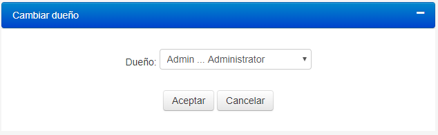 5.Haga clic en el enlace de Cambio de Dueño. Una ventana con una lista desplegable de nombres de usuarios será desplegada: