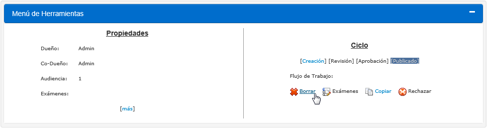 3.En de la pantalla de edición de políticas Editar, haga clic en el enlace Borrar. Se podrá señalar con un mensaje, la indicación de que la publicación de políticas no puede ser eliminada, y le preguntará si se quiere desactivar la política: