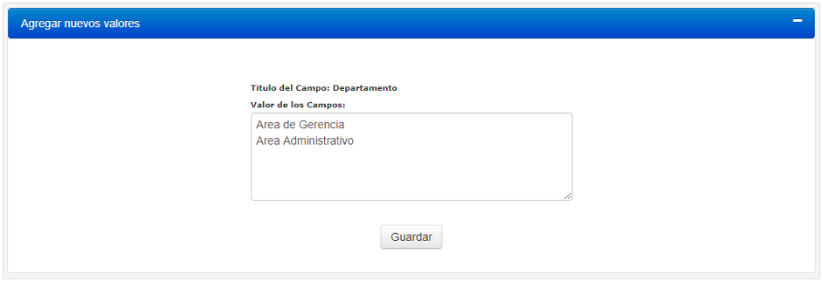 5.Ingrese los valores válidos para usar el campo en el espacio suministrado, luego presione Guardar: