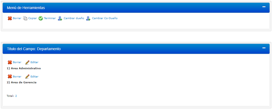 7.Haga clic en el nombre del campo en Creación y asígnelo. Puede modificar o borrar los valores de los campos, cambiar el dueño de los mismos o terminarlo (asignarlo):