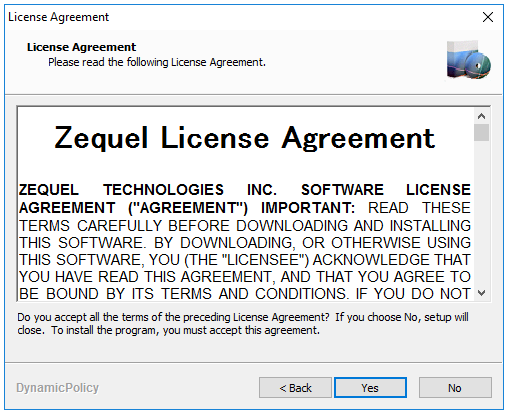 3.En la pantalla de Acuerdo de Licencia (License Agreement), lea y presione Yes para aceptarlo: