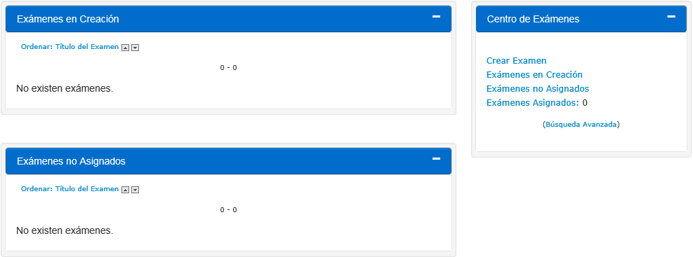 1.Sobre la pantalla del Centro de Exámenes, haga clic en Crear Examen:
