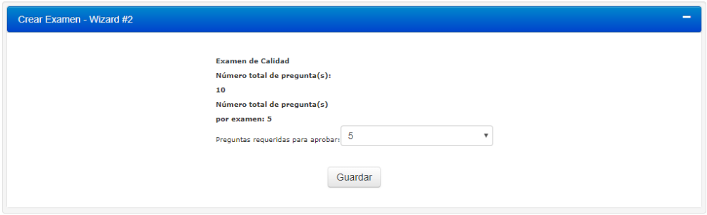 7.Seleccione el número de preguntas que los usuarios deben contestar correctamente para aprobar el examen.