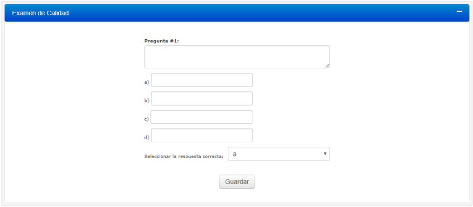 Puede agregar preguntas a su examen inmediatamente después de crearlo, o puede retornar después a esta parte para ingresar las preguntas. Puede escoger desde tres diferentes formatos de preguntas/respuestas: